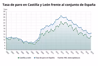 El número de parados en Castilla y León creció en 11.600 personas en el primer trimestre del año (un 9,31 por ciento más, frente a una subida nacional del 1,51 por ciento) lo que sitúa el total de desempleados de la Comunidad en 136.700 y supone una tasa de paro del 12,42 por ciento sobre la población activa (por debajo de la media nacional, que fue del 14,70 por ciento), según los datos de la Encuesta de Población Activa (EPA) hechos públicos por el Instituto Nacional de Estadística (INE) y recogidos por Europa Press.