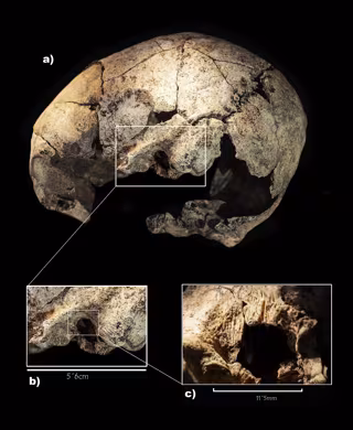 El artículo de Scientific Reports se centra en el descubrimiento del cráneo de una mujer de avanzada edad que presenta dos perforaciones bilaterales compatibles con sendas mastoidectomías.