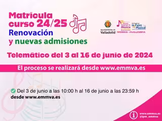 Matrícula en la Escuela Municipal de Música de Valladolid para el curso 2024-2025. - ESCUELA MUNICIPAL DE MÚSICA DE VALLADOLID