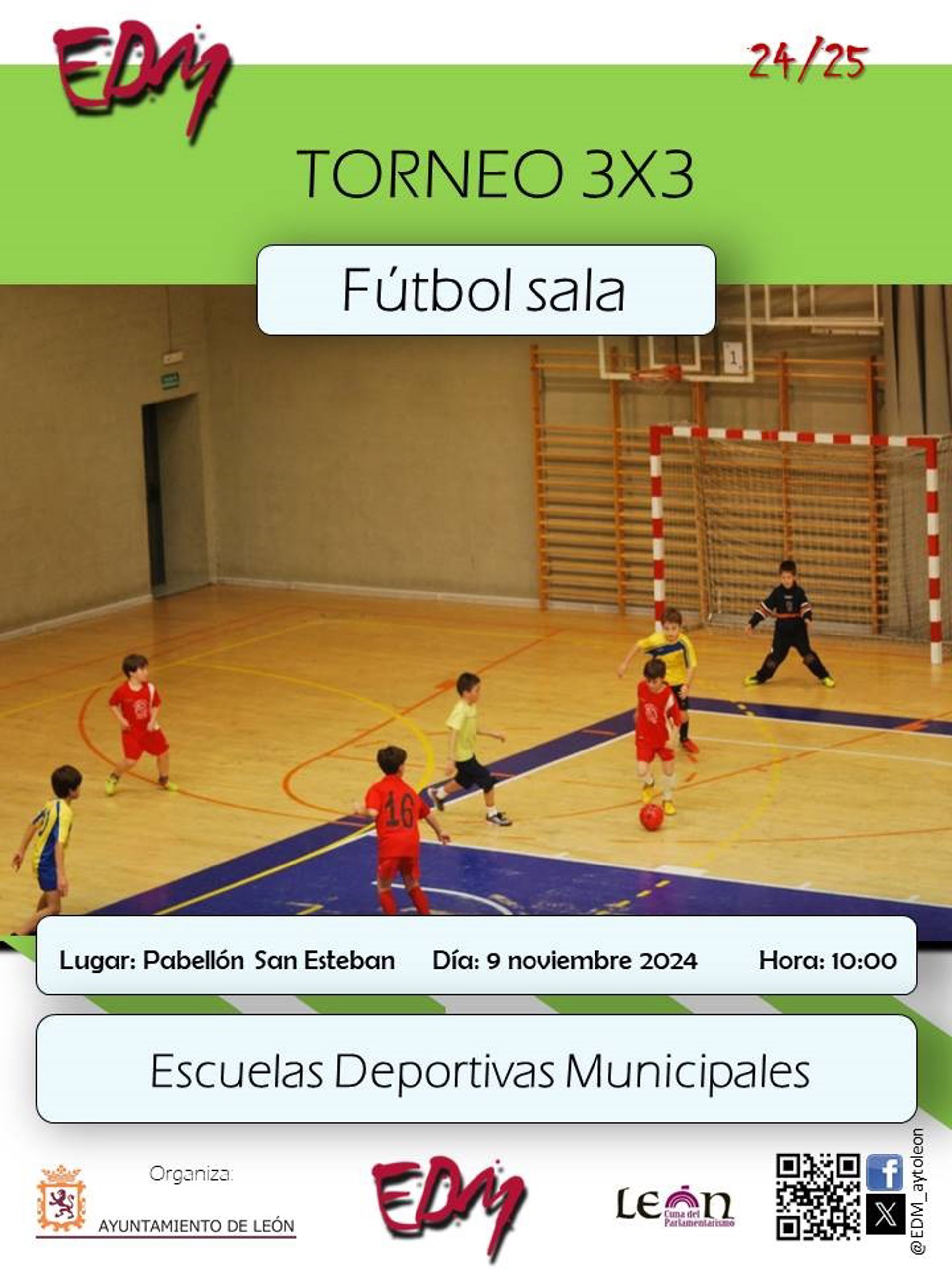 Por su parte, la EDM de Fútbol Sala ha programado un 'Torneo 3x3' en el Pabellón San Esteban, también el sábado 9 de noviembre, de 10.00 a 14.00 horas, con el objetivo de "disfrutar de una actividad competitiva diferente", ya que los niños jugarán en terrenos de juego con dimensiones reducidas y con variación del número de jugadores por equipo.