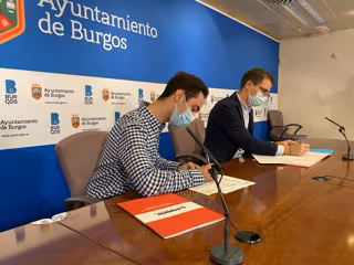 El convenio firmado por entre AJE y el Ayuntamiento de Burgos, con una vigencia de un año y la posibilidad de tres prórrogas, conlleva aparejada una aportación municipal de algo más de 56.000 euros e incluye, además de la gestión del Espacio Emprende, la del vivero empresarial del barrio de Capiscol y la organización del Premio Joven Empresario, que este año se organizará "de un modo diferente" debido a la pandemia de la COVID-19.