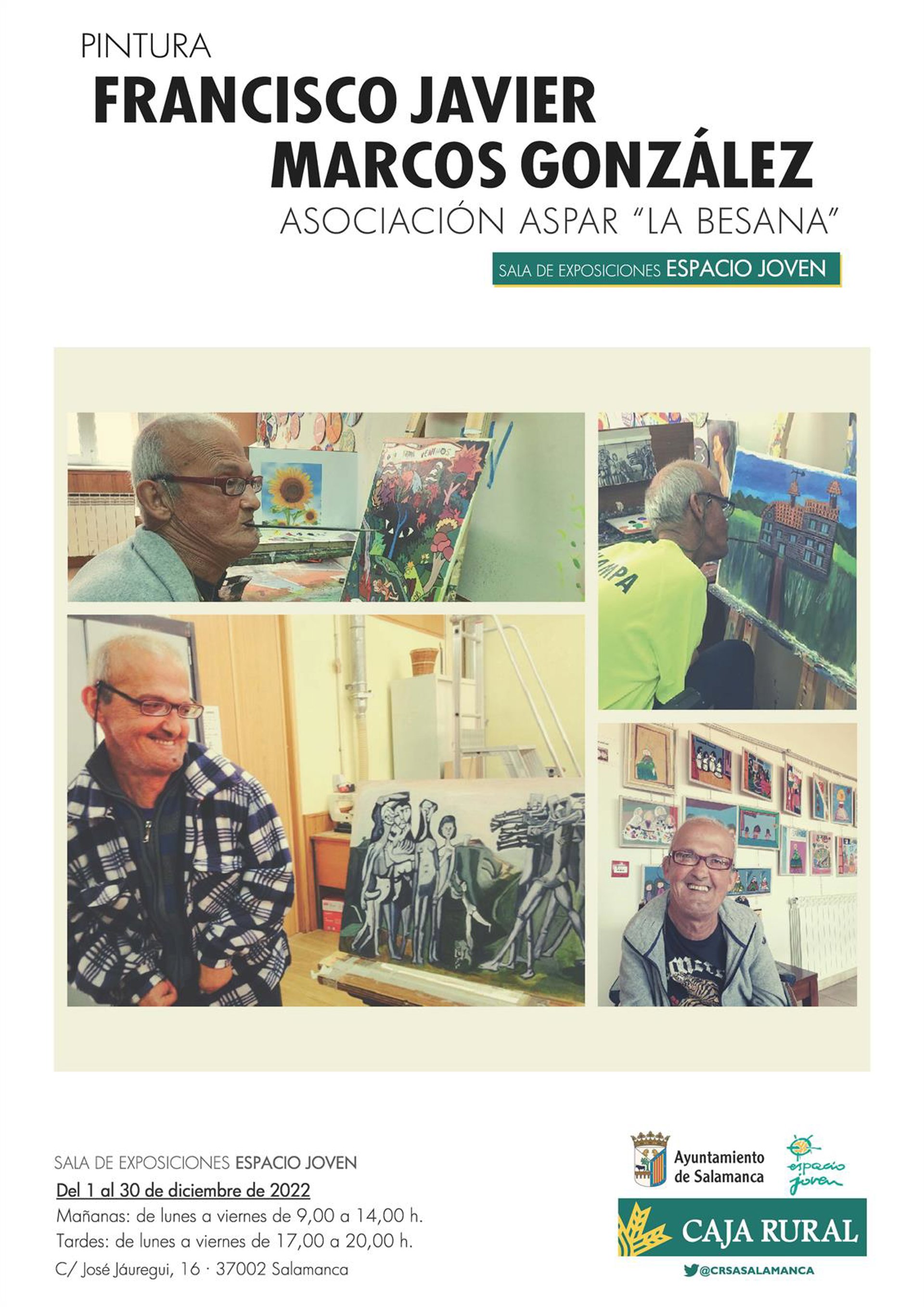 La sala de exposiciones del Espacio Joven de Salamanca acogerá durante todo el mes de diciembre una exposición de pintura que reúne una serie de obras realizadas con la técnica de la boca por Francisco Javier Marcos González, de la Asociación Aspar 'La Besana'.