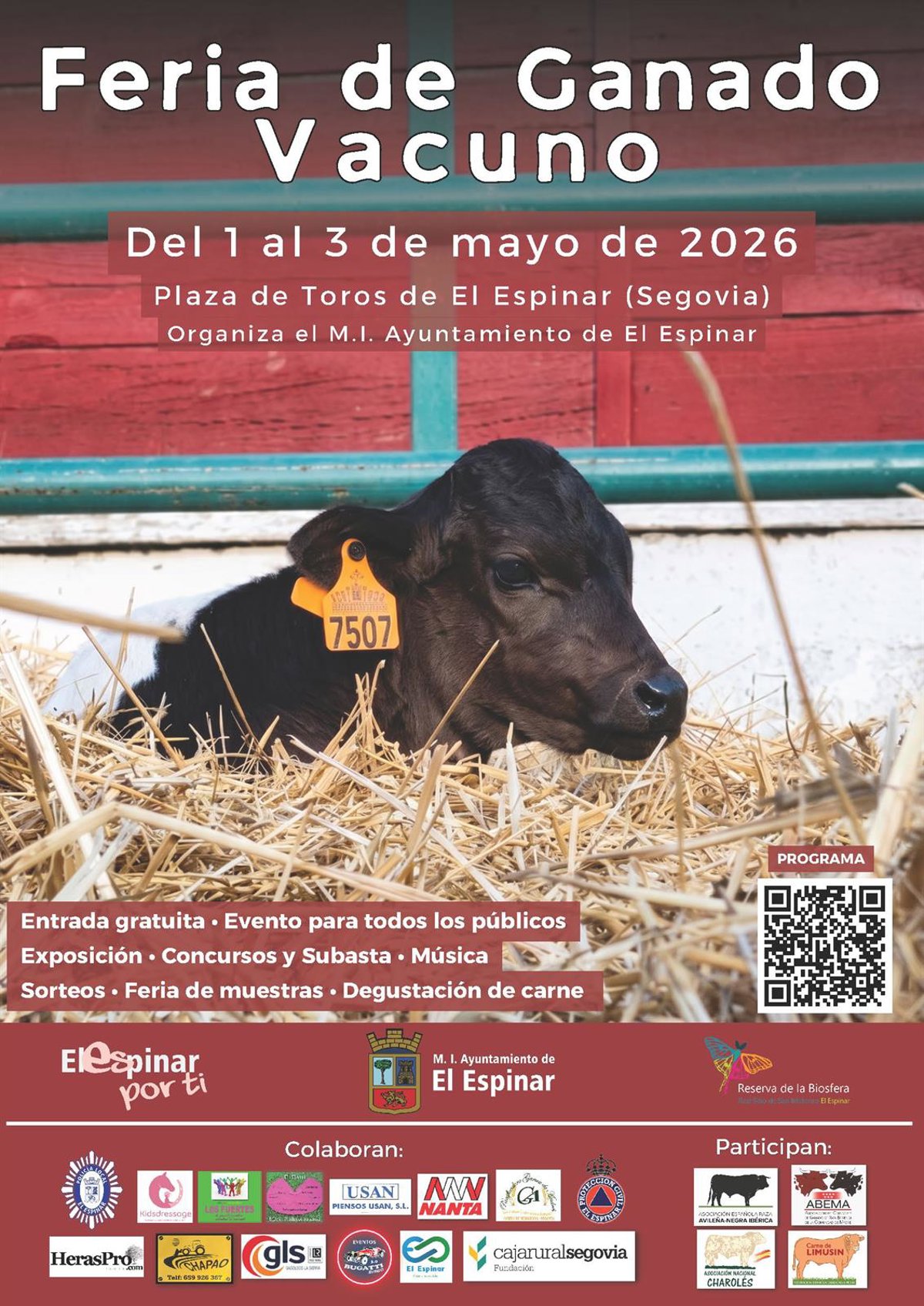 El municipio segoviano de El Espinar celebrará del 1 al 3 de mayo su Feria de Ganado Vacuno, en la Plaza de Toros local, con entrada gratuita y un programa que combina la actividad ganadera con propuestas culturales, gastronómicas y de ocio familiar para el público general, que tyendrá entrada gratuita.