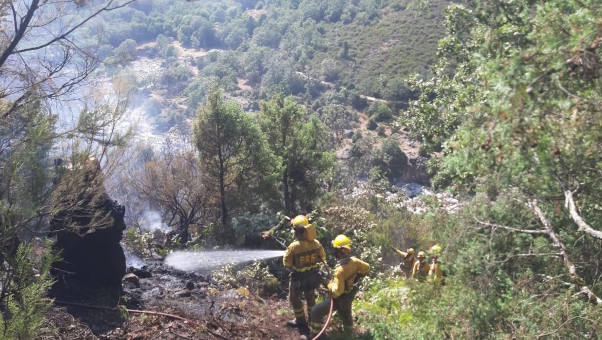 Las llamas se han originado en la garganta Alardos, cerca de El Raso, en una zona de arbolado, y en él han intervenido numerosos efectivos, entre del Gobierno central, la Junta de Castilla y León y de Extremadura.