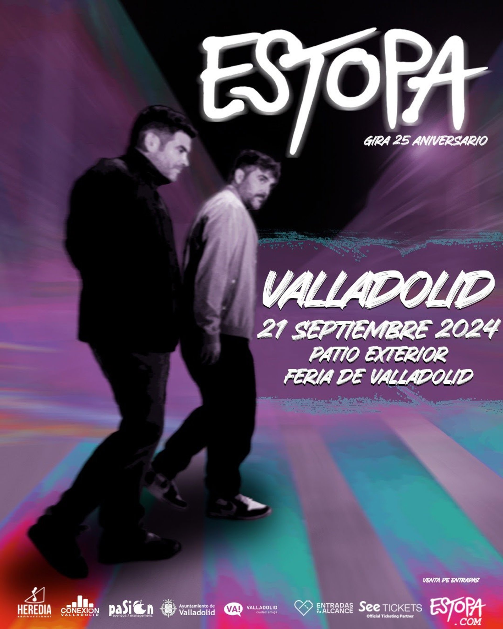 Tras agotar todas las entradas en cuestión de horas para sus conciertos en el Estadio Cívitas Metropolitano de Madrid y en el Estadi Olímpic de Barcelona, donde más de 100.000 personas consiguieron hacerse con sus tickets, Estopa se prepara para un concierto en la Feria de Valladolid (patio exterior).