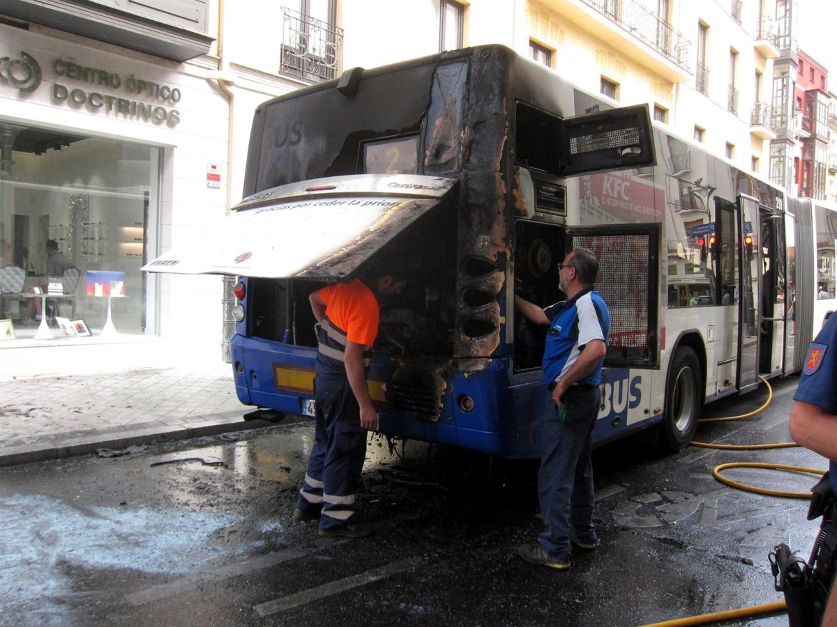 Más de cuarenta pasajeros tuvieron que salir a la carrera esta mañana de un autobús de transporte de la empresa municipal de autobuses (Auvasa) de Valladolid tras iniciarse un fuego en la parte trasera del mismo que afectó al motor.