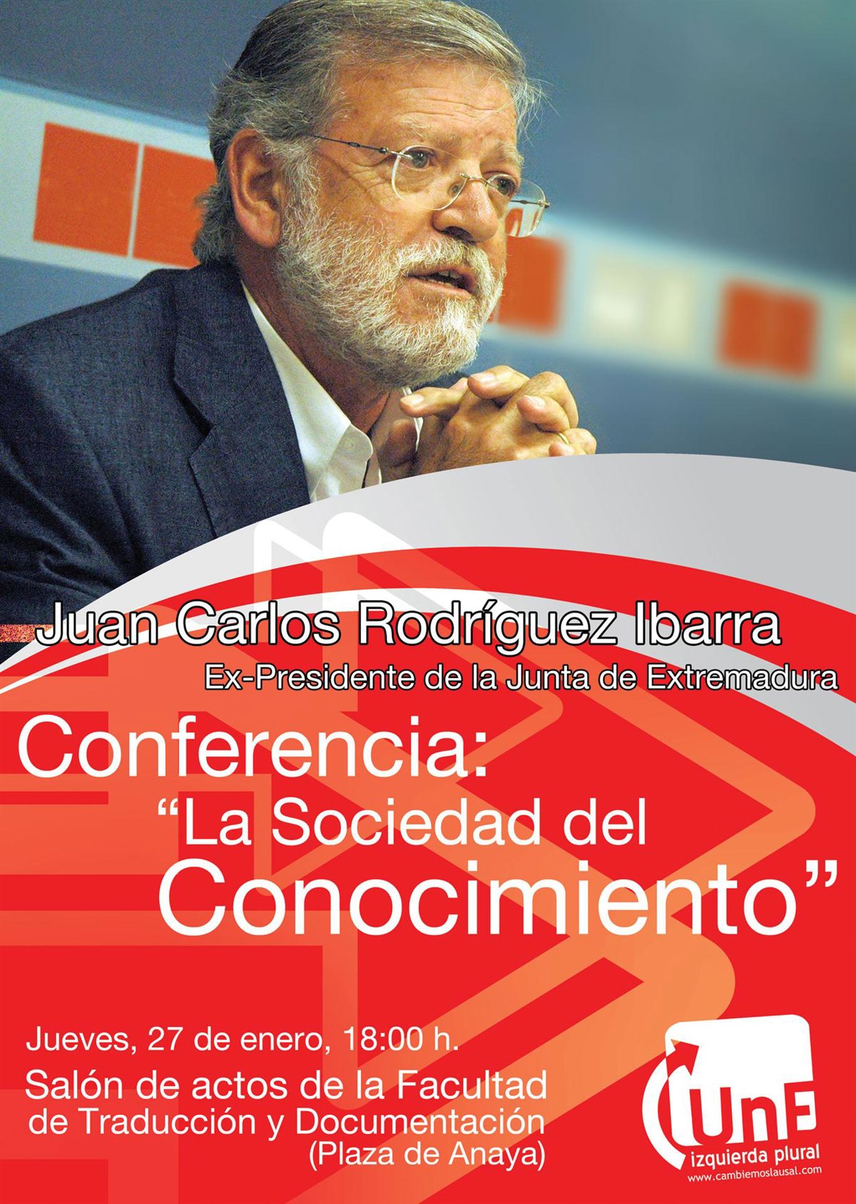 El ex presidente de Extremadura Juan Carlos Rodríguez Ibarra, premio a la Trayectoria Profesional en el Día Mundial de Internet 2010, impartirá mañana en la Facultad de Traducción y Documentación de la Universidad de Salamanca la conferencia 'La Sociedad del Conocimiento', organizada por Unidad Estudiantil-Izquierda Plural (UnE).
