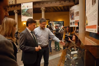 La muestra ha sido inaugurada este martes en un acto en el que han estado presentes el presidente de la Institución Provincial, Francisco Vázquez; el geólogo Andrés Díez Herrero, y los arqueólogos responsables del yacimiento, David Álvarez-Alonso, María de Andrés Herrero y Julio A. Rojo Hernández.