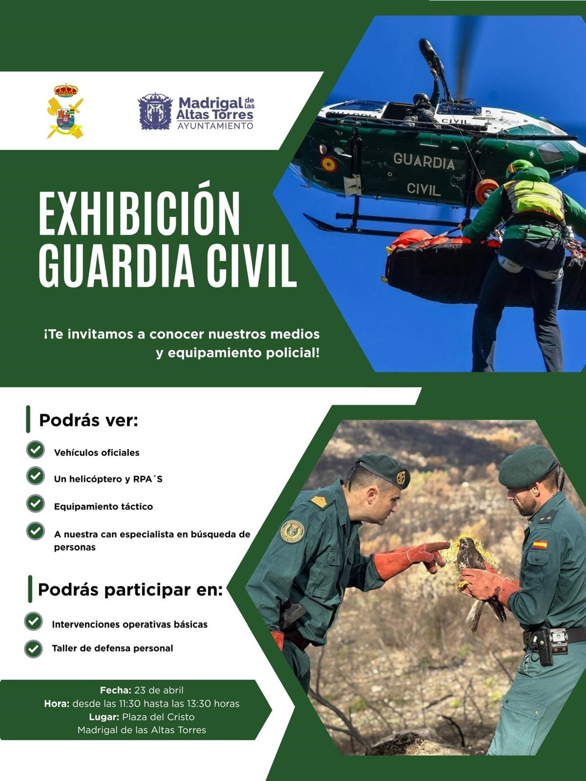 El Ayuntamiento de Madrigal de las Altas Torres, en colaboración con la Guardia Civil, ha organizado esta exhibición que tendrá lugar entre las 11.30 y las 13.30 horas, según ha informado la Benemérita en un comunicado recogido por Europa Press.