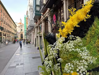 La exhibición floral 'Platerías en flor' regresa a la emblemática calle vallisoletana con su tercera edición, en la que la decoración está inspirada en las ovejas.