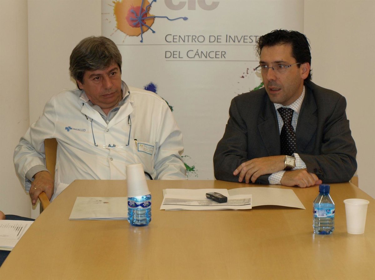 Los oncólogos Juan Jesús Cruz y César A. Rodríguez han presentado esta mañana el III Simposium Bases biológicas del cáncer y terapias dirigidas, que tiene lugar durante dos días, 26 y 27 de mayo, en el Centro de Investigación del Cáncer de Salamanca.