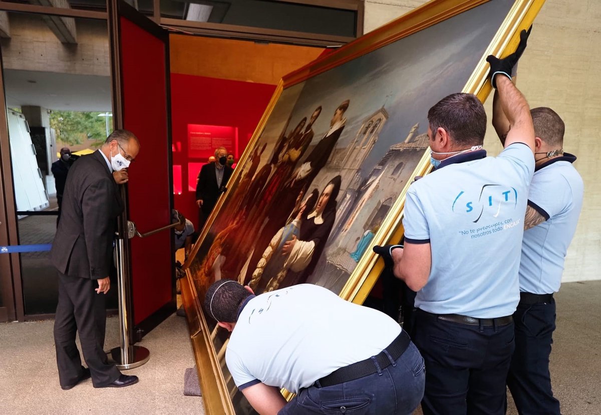 Este jueves ha salido de la sede del Parlamento autonómico en dirección al Congreso de los Diputados el lienzo 'Los comuneros Padilla, Bravo y Maldonado en el patíbulo', de Antonio Gisbert, una de las 150 piezas que han articulado la narrativa de la exposición y que más ha llamado la atención del público.