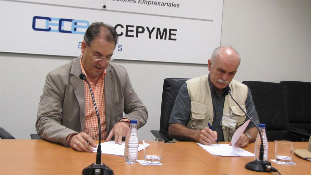 El presidente de la Confederación de Asociaciones Empresariales de Burgos (FAE), Miguel Ángel Benavente, y el director general de la Fundación Atapuerca, Eudald Carbonell, han suscrito este jueves un convenio de colaboración por el cual FAE aportará anualmente a la Fundación 3.000 euros en concepto de donativo.