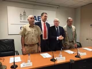 Los presidentes de la Confederación de Asociaciones Empresariales de Burgos (FAE) y la Fundación Atapuerca, Miguel Ángel Benavente y Antonio Miguel Méndez Pozo, respectivamente, han renovado este viernes el convenio de colaboración entre ambas entidades, que contempla una aportación anual de 3.000 euros al proyecto investigador que mantiene la Fundación.