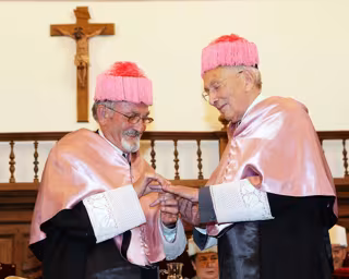 Antonio Vázquez (I) En La Toma De Posesión Como Doctor Honoris Causa Por La UPSA De Antoine Vergote (D) En 2005. - UPSA.