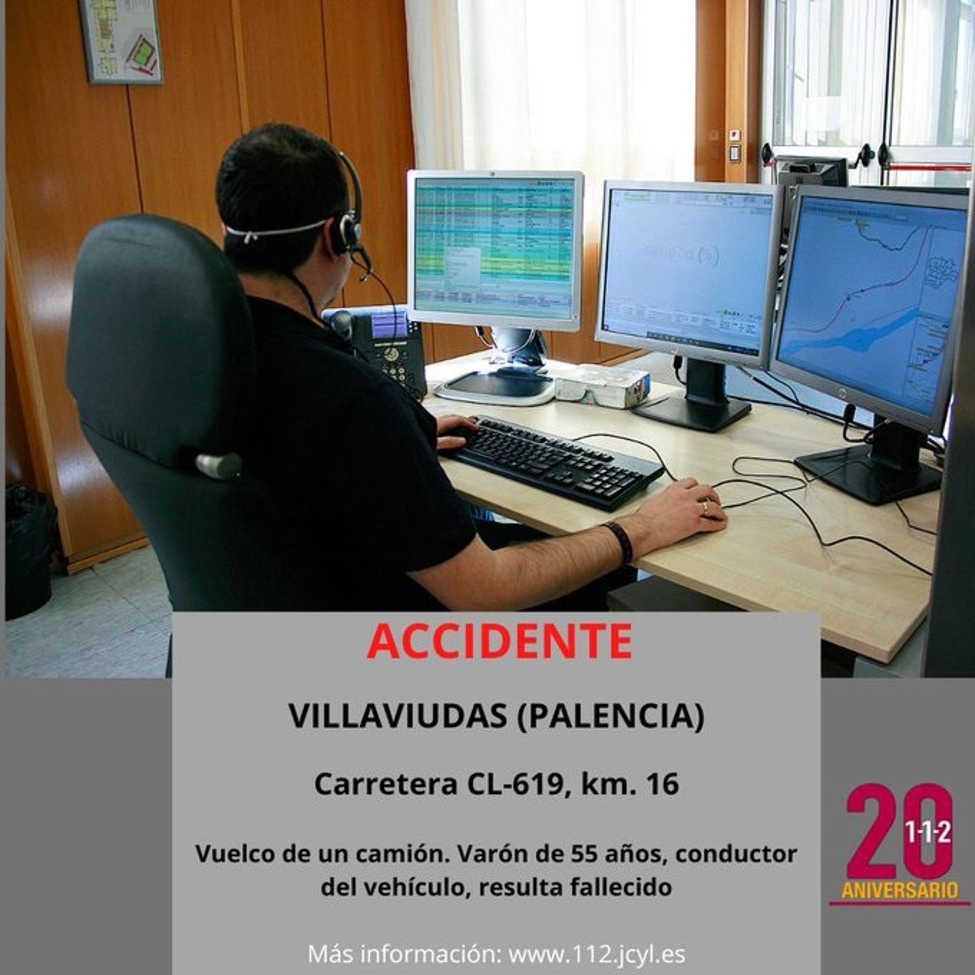 Un varón de 55 años ha perdido la vida como consecuencia de un accidente de circulación registrado esta noche en la carretera CL-619 a la altura del término palentino de Villaviudas y en el que se ha visto implicado un camión, según los datos que aporta el Servicio de Emergencias de Castilla y León 112 recogidos por Europa Press.