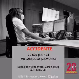 Un varón de 38 años ha perdido la vida en la mañana de este sábado, 31 de diciembre, tras sufrir un accidente de circulación cuando circulaba con su motocicleta en la carretera CL-605 a la altura del término zamorano de Villaescusa.