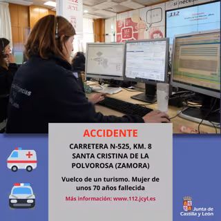 Este accidente ha ocurrido alrededor de las 13.53 horas cuando varios alertantes informaron al 112 del vuelco de un turismo en el kilómetro 8 de la carretera N-525, en Santa Cristina de la Polvorosa a consecuencia del cual había resultado herida una mujer, quien se hallaba inconsciente fuera del vehículo.