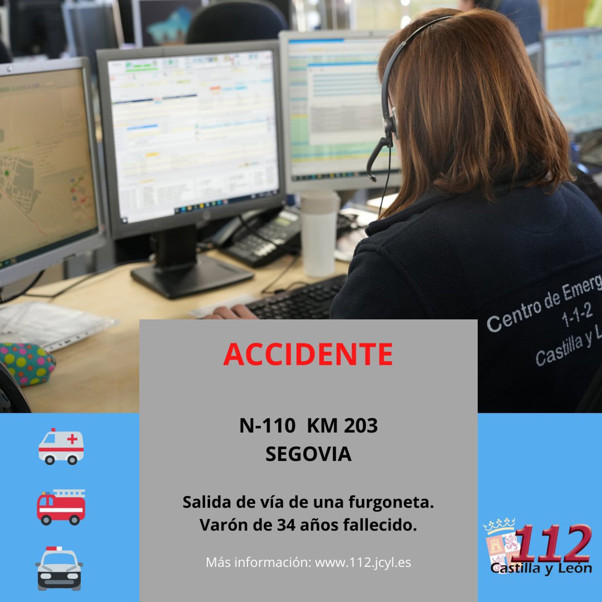 Imagen compartida por el 112 CyL con información sobre el accidente en el que ha fallecido un varón en la N-110. - 112 CYL