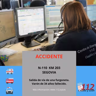 Un varón de 34 años ha fallecido tras salirse de la vía una furgoneta en la N-110 en Segovia, según datos del 112 Castilla y León recogidos por Europa Press.