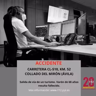 Un varón de 68 años ha perdido la vida como consecuencia de un accidente de tráfico registrado esta noche en la carretera CL-510 a la altura del término abulense de Collado del Mirón, según los datos que aporta el Servicio de Emergencias de Castilla y León 112 y recoge Europa Press.