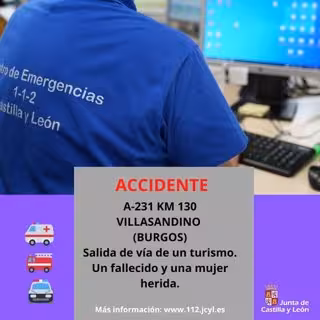 Un fallecido y una persona herida es el balance provisional de un accidente de circulación registrado a primeras horas de la mañana de este viernes, 2 de agosto, en la A-231 en el término burgalés de Villasandino.