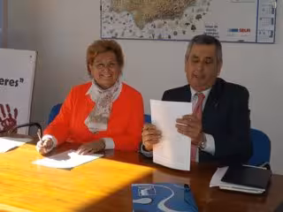 La presidenta nacional de la Federación de la Mujer Rural (Femur), Juana Borrego, y el presidente del campo de golf Villa de Cuéllar, José María Yagüe, han rubricado este lunes un convenio para promover el golf entre las féminas asociadas a Femur, que podrán beneficiarse de precios ventajosos a la hora de practicar este deporte.