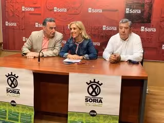 La concejal del Ayuntamiento Teresa Valdenebro; el director de Soriactiva, Anselmo García, y el presidente de la Agrupación de Defensa Sanitaria de bovino, Gustavo Gonzalo, han presentado esta mañana la Feria..