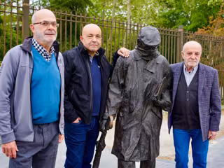 Libreros de la ciudad, junto a la estatua de Delibes. - FERIA DEL LIBRO