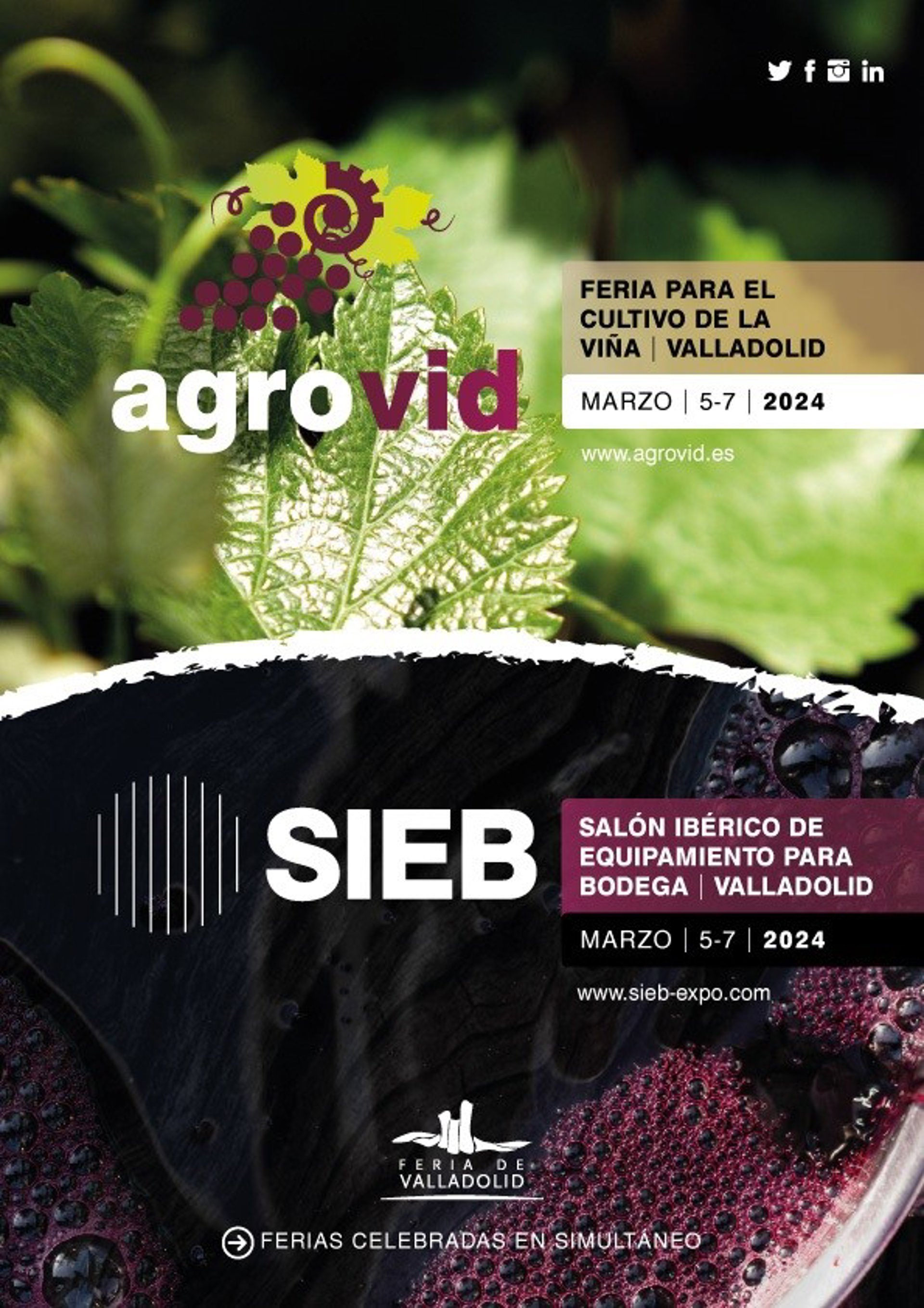 Feria de Valladolid celebrará entre el 5 y el 7 de marzo de 2024 dos salones especializados en la vitivinicultura como Agrovid y SIEB, dedicadas al cultivo del viñedo y el equipamiento para bodegas, respectivamente.