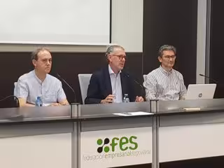 El presidente de Fecose, Roberto Manso (izda); el presidente de FES, Andrés Ortega, y el técnico Libardo Palma. - EUROPA PRESS