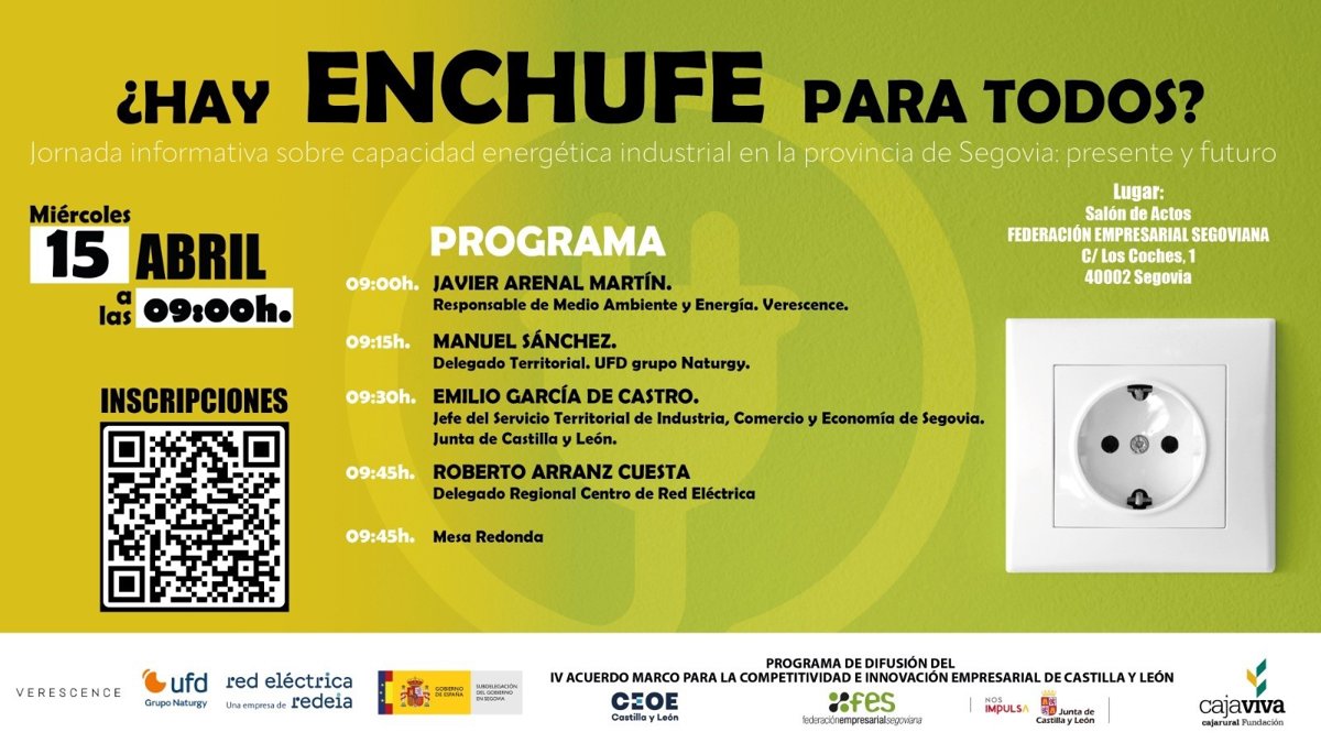 La jornada se ha titulado '¿Hay enchufe para todos? Capacidad energética industrial en Segovia: presente y futuro', y ha tenido intervenciones de representantes de la empresa Verescence, el Servicio Territorial de Industria de la Junta, UFD grupo Naturgy y Red Eléctrica (Redeia).