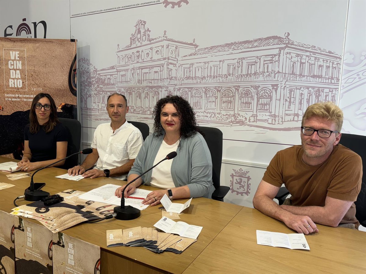 La concejala de Juventud del Ayuntamiento de León, Vera López, ha presentado este viernes esta nueva entrega de Festival Vecindario acompañada de Manuel Alonso y Alba González, de la Asociación Cultural MAL; y del director de Actividades Culturales de la Universidad de León (ULE), César Ordóñez.