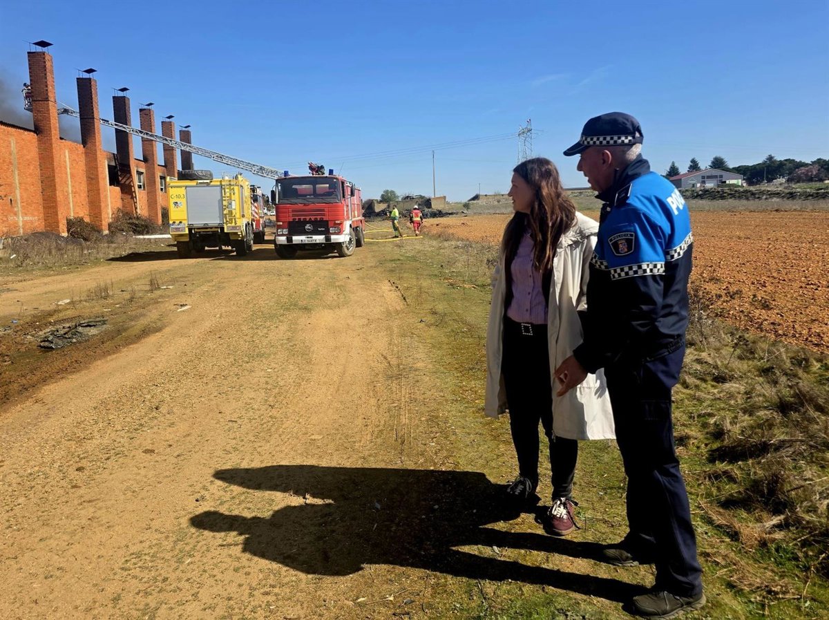 Mejora la situación del incendio en una nave de residuos plásticos en La Bañeza (Leon), aunque todavía no está extinguido. - AYUNTAMIENTO DE LA BAÑEZA