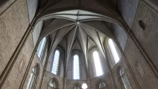 El crucero y los ábsides todavía mantienen el estilo inicial gótico, a pesar de la larga decadencia del edificio durante el siglo XIX, que culminó con el derrumbe de las bóvedas del crucero en el incendio del año 1968, reconstruidas con hormigón armado.