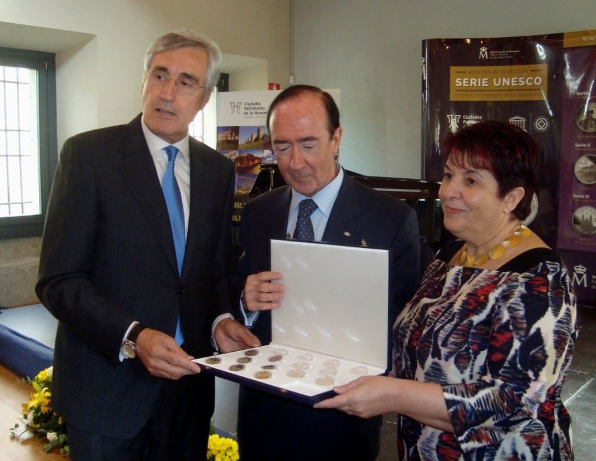 La colección se ha presentado este martes en la Real Casa de Moneda de Segovia en un acto que ha contado con la presencia del presidente del Grupo de Ciudades Patrimonio y alcalde de Ávila, José Luis Rivas, y los alcaldes de Segovia, Clara Luquero; Cuenca, Ángel Mariscal; Baeza, Lola Marín; Alcalá de Henares (Madrid), Javier Rodríguez, y Tarragona, Josep Ballesteros, así como la concejal de Cultura de Toledo, Rosana Rodríguez, y la directora gerente de la Fundación Albéniz, Lola Marín.