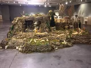 La novedad de este año es la recreación, en un lateral del belén y a modo de cueva, de un diorama de la capilla de la iglesia de San Fernando de la capital burgalesa, en homenaje póstumo a su sacerdote, fallecido en 2014, y con una implicación directa a esta instalación en años anteriores.