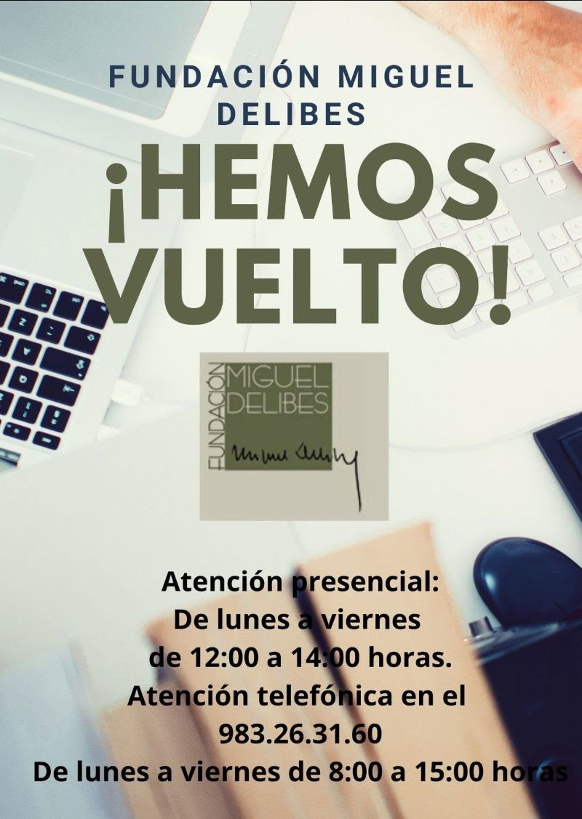 Cartel sobre la reapertura de la atención al público en la Fundación Miguel Delibes. - FUNDACIÓN MIGUEL DELIBES