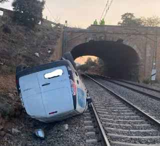 Imagen de la furgoneta volcada en las vías del tren - SUBDELEGACIÓN DEL GOBIERNO