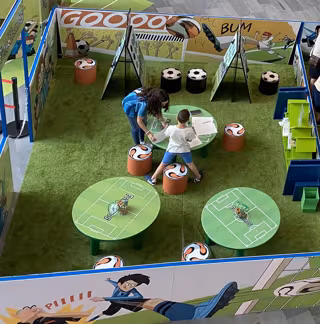 El espacio de 'Los Futbolísimos' contará con dos zonas de juegos, una relacionada con actividades sobre habilidades (jenga, puzzles) y otra más interactiva con pantallas táctiles y zona de lectura. Además, toda la familia podrá inmortalizar el momento de su visita en el photocall con los personajes habilitado en el espacio.