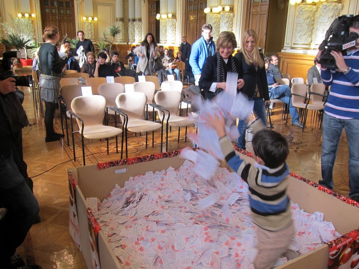 El sorteo se ha celebrado hoy ante notario, con la extracción de la papeleta del primer premio por valor de 6.000 euros, y de las treinta por valor de 400 euros cada una, y además ha tenido lugar la entrega de los premios del Concurso de Escaparates.