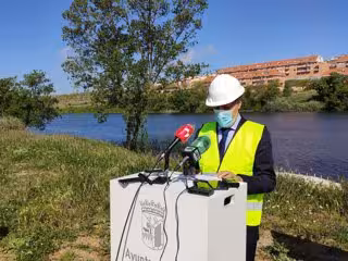 El alcalde de Salamanca este lunes en su visita a las obras de la nueva pasarela en Huerta Otea - EUROPA PRESS
