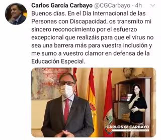 En un vídeo que ha compartido en redes sociales con motivo del Día Internacional de las Personas con Discapacidad, el regidor salmantino se ha sumado al "clamor social en defensa de la educación especial".