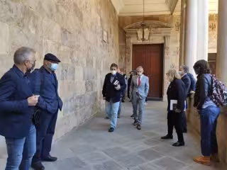 García Montero, izquierda, llega a la Facultad de Filología de la USAL junto al rector de la institución salmantina, Ricardo Rivero (derecha) - EUROPA PRESS