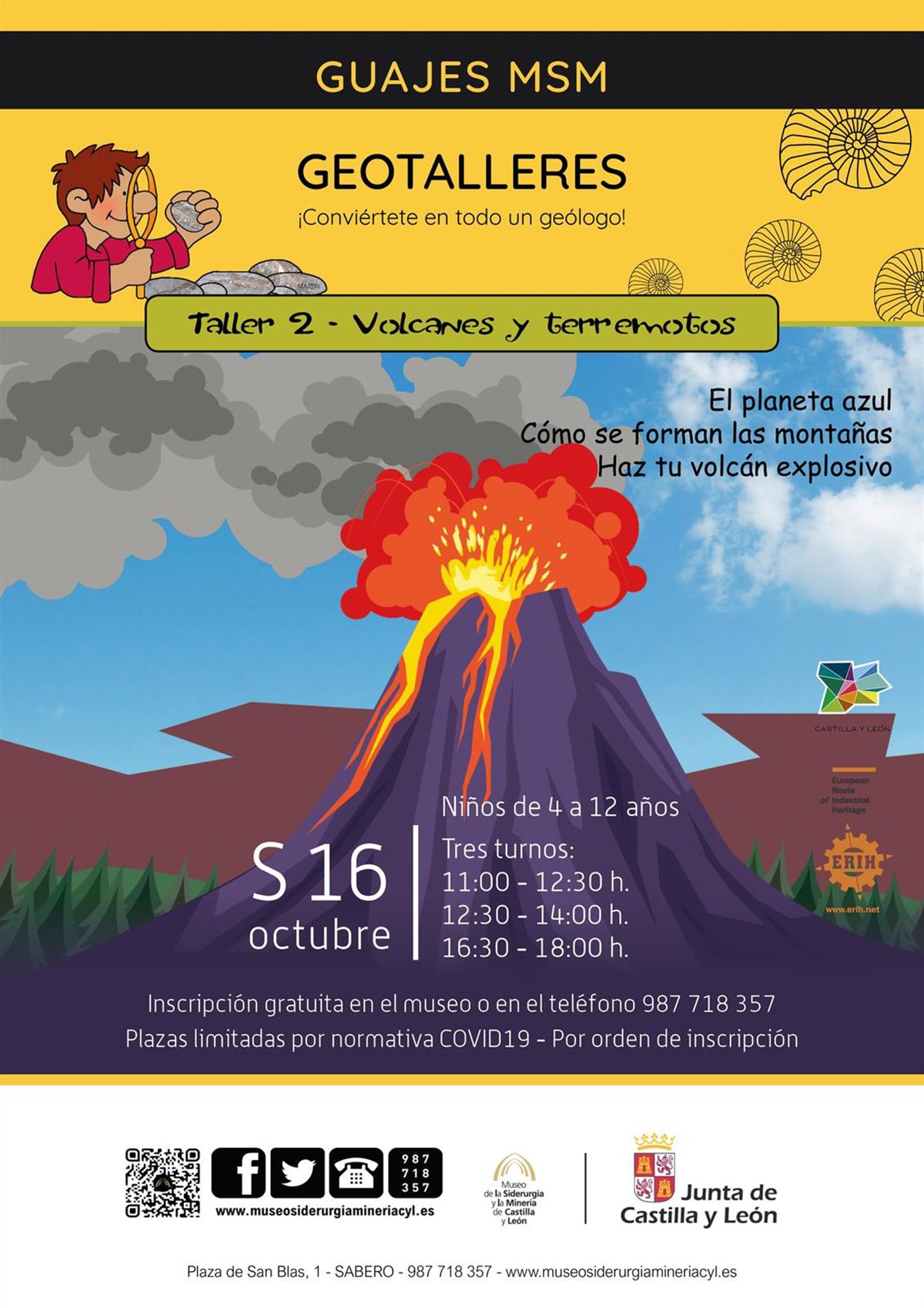 El Museo de la Siderurgia y la Minería de Castilla y León con sede en la localidad leonesa de Sabero acogerá el próximo sábado, 16 de octubre, una nueva sesión de los geotalleres infantiles que, en esta ocasión, está dedicada a los volcanes y a los terremotos.