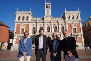 Archivo - Álvaro Fernández Heredia (a la izquierda), junto al alcalde de Valladolid, Óscar Puente, y los concejales Luis Vélez y Manuel Saravia. - AYUNTAMIENTO DE VALLADOLID - Archivo