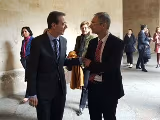 Germán Barrios (i) habla con el rector de la USAL, Ricardo Rivero (d), en Salamanca. - EUROPA PRESS