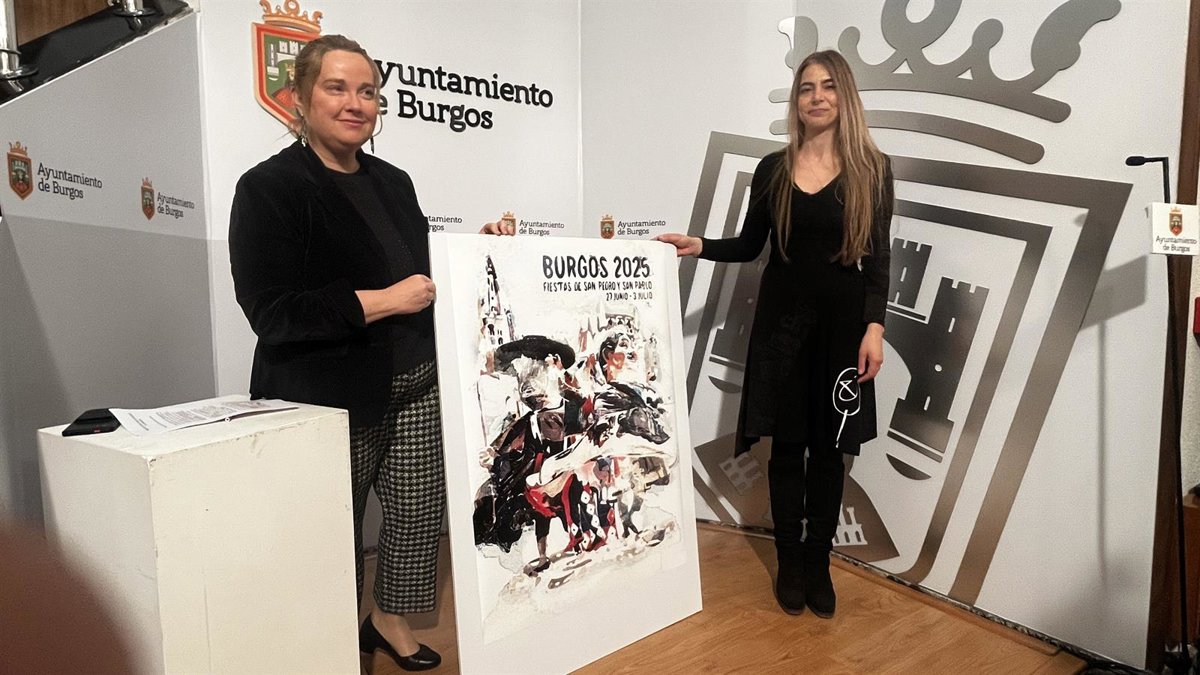 La alcaldesa de Burgos, Cristina Ayala, ha presentado este martes el cartel de las fiestas de San Pedro y San Pablo de 2025 que representa la "imagen" de los festejos de la ciudad. Están presentes las figuras más representativas, los Gigantillos, la Catedral y otros detalles propios de las fiestas, como los tetines, en un cartel "novedoso, en movimiento".