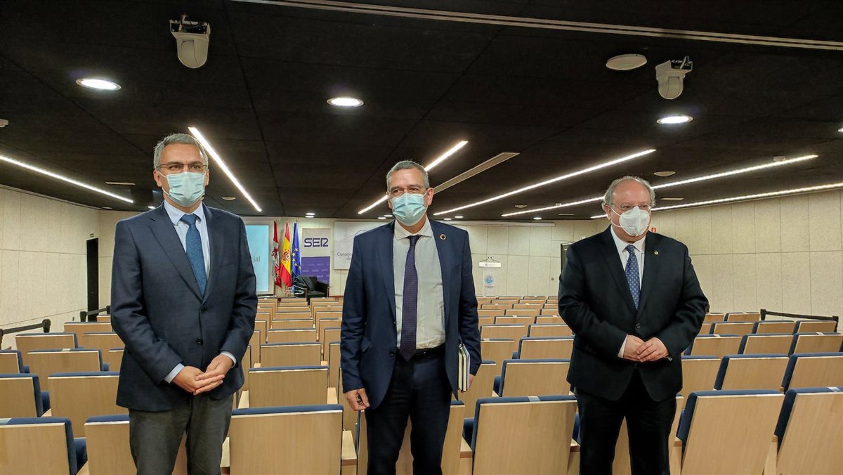 El secretario general para el Reto Demográfico, Francés Boya, (centro) junto al delegado del Gobierno en Castilla y León, Javier Izquierdo, (i) y el presidente del CESCyL, Enrique Cabero. - EUROPA PRESS