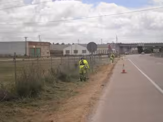 Varios operarios realizan obras de conversación en una carretera. - TRANSPORTES
